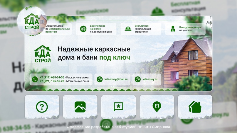 ☘ Разработали оформление группы VK для Строительной Компании «КДА-строй». В оформление вошли следующие элементы: аватарка, шапка, обложка под мобильные устройства (прикреплена в комментариях), блоки. Срок реализации: 2 дня.