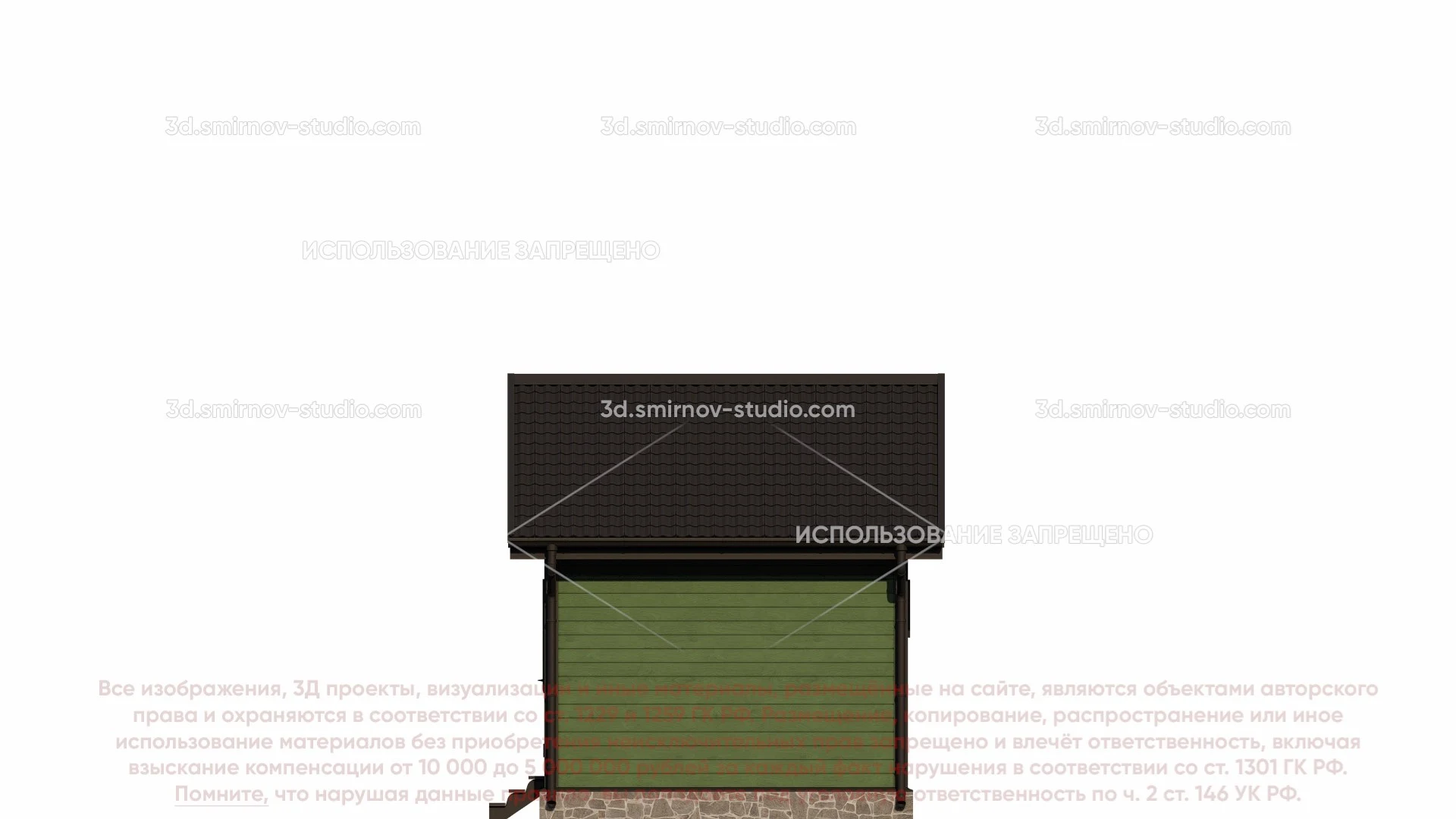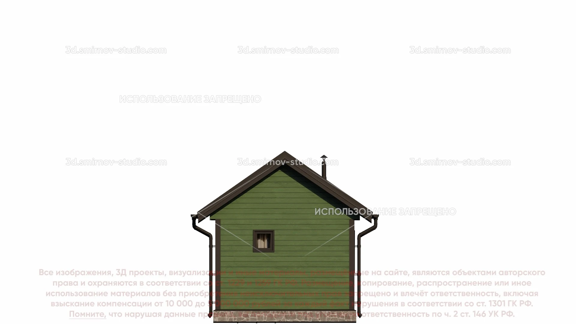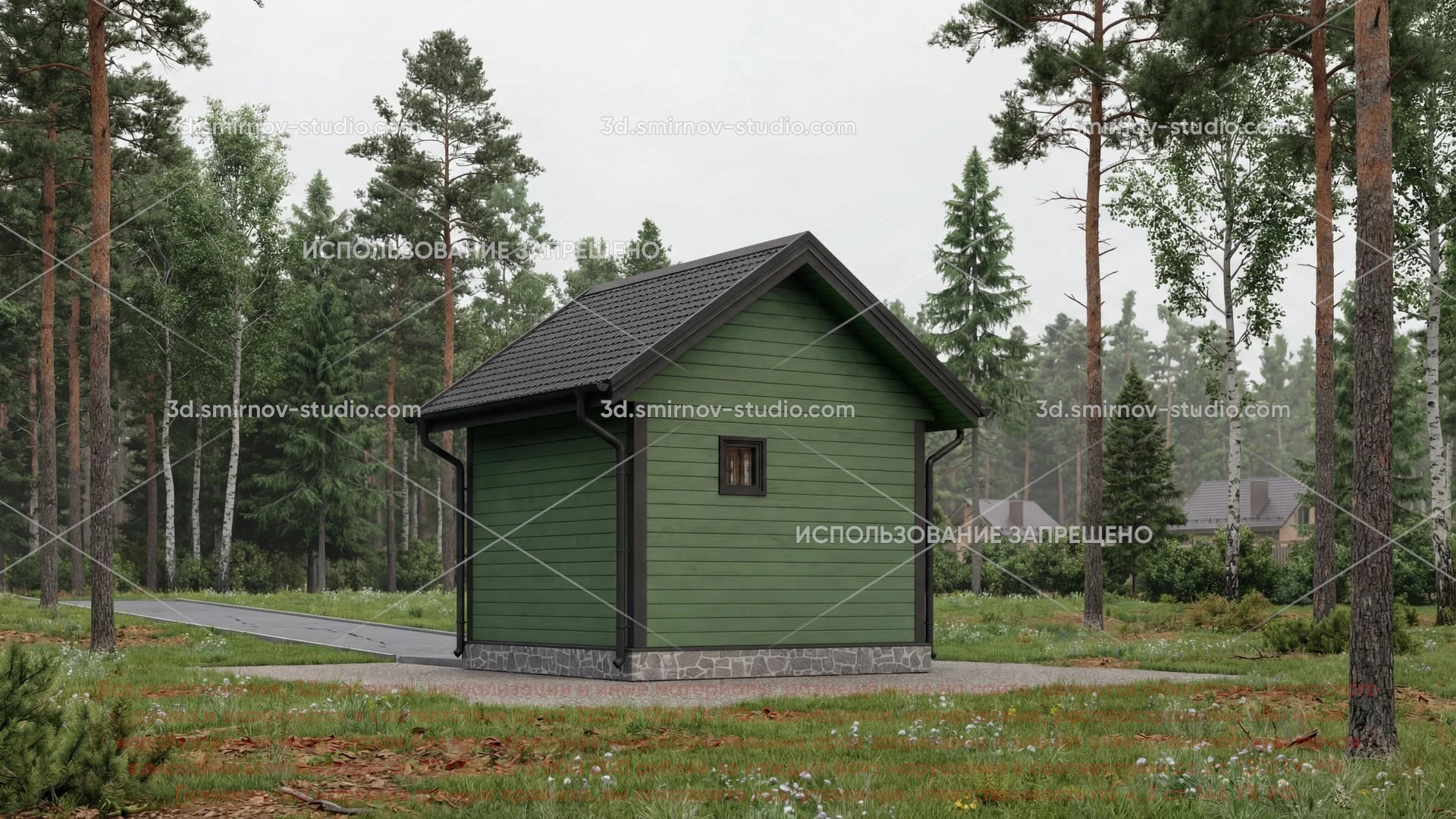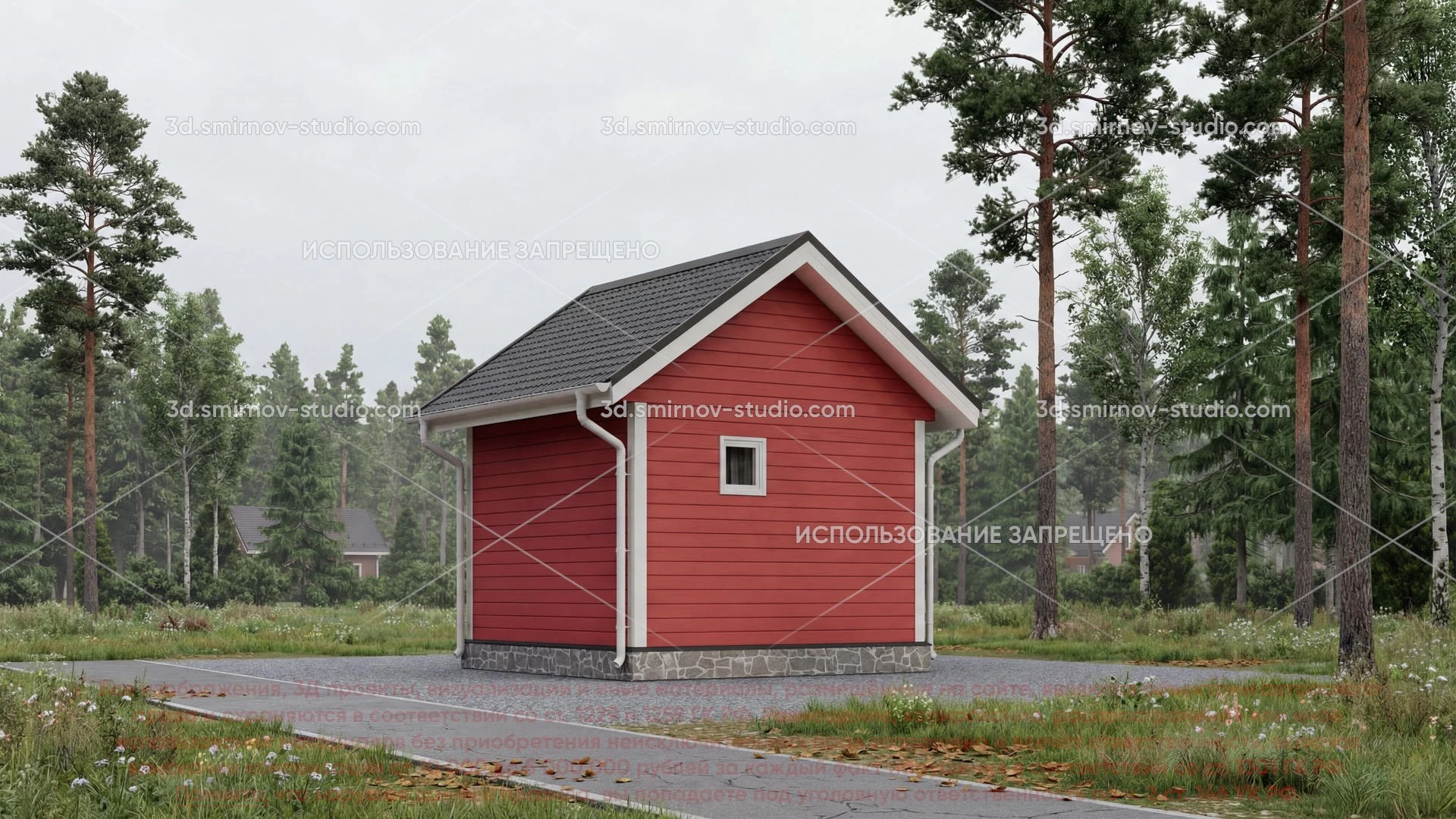 3Д проект одноэтажной каркасной бани 4 на 4 метра, площадью 14,1 м², с прямой крышей и комнатой отдыха