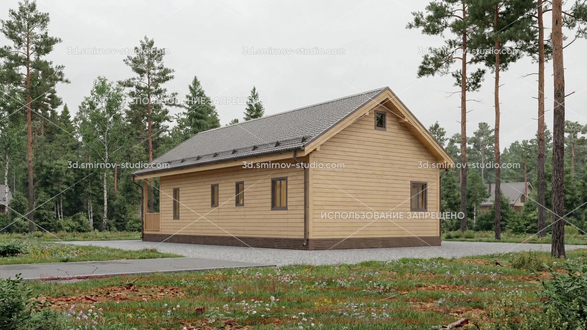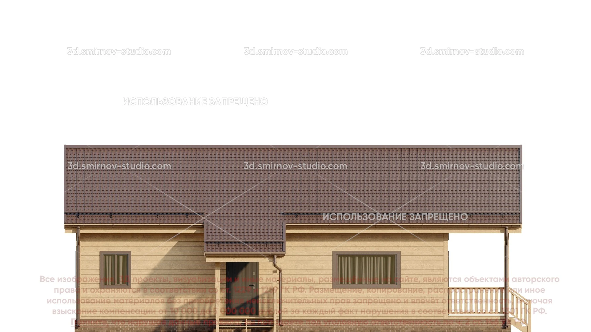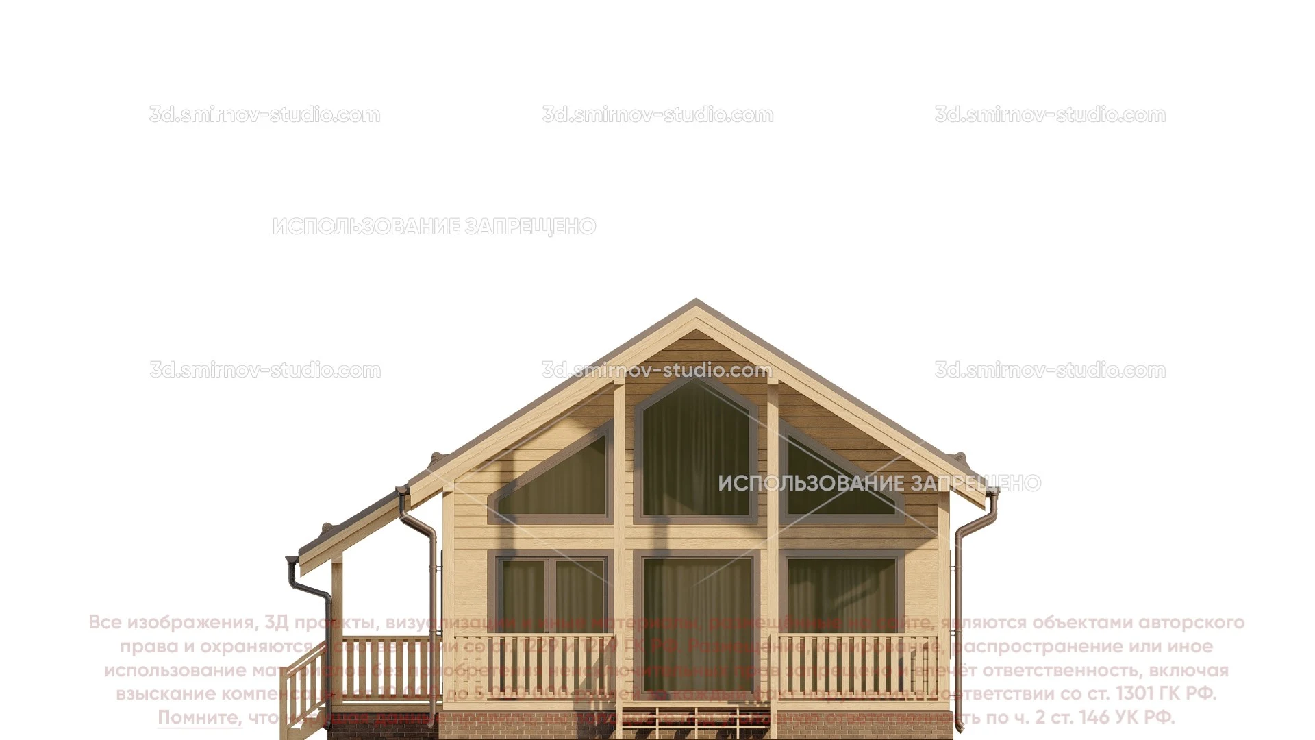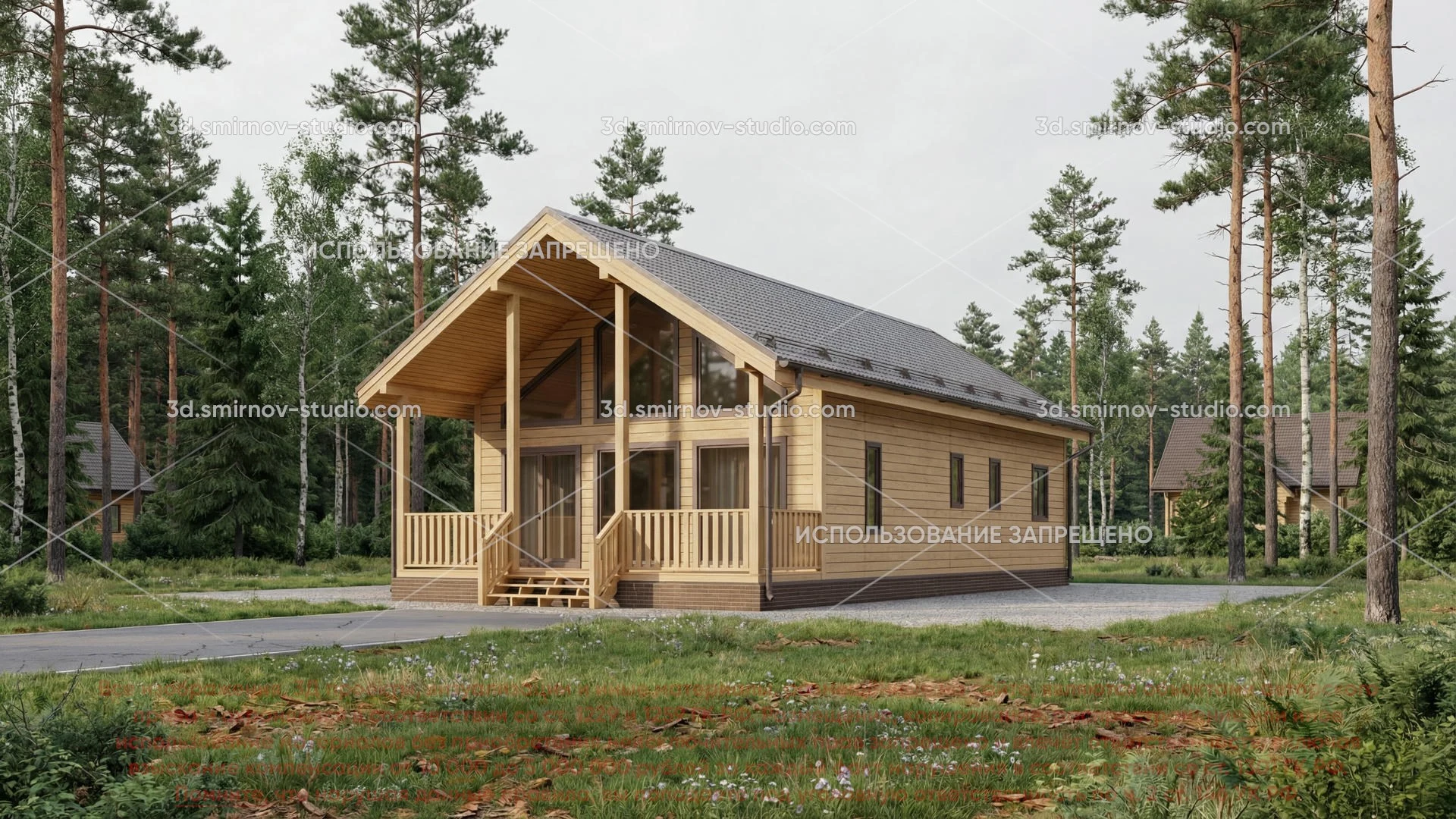 3Д проект дома из бруса 12 на 7 метров, площадью 116,75 м², с прямой крышей, террасой, крыльцом и антресолью