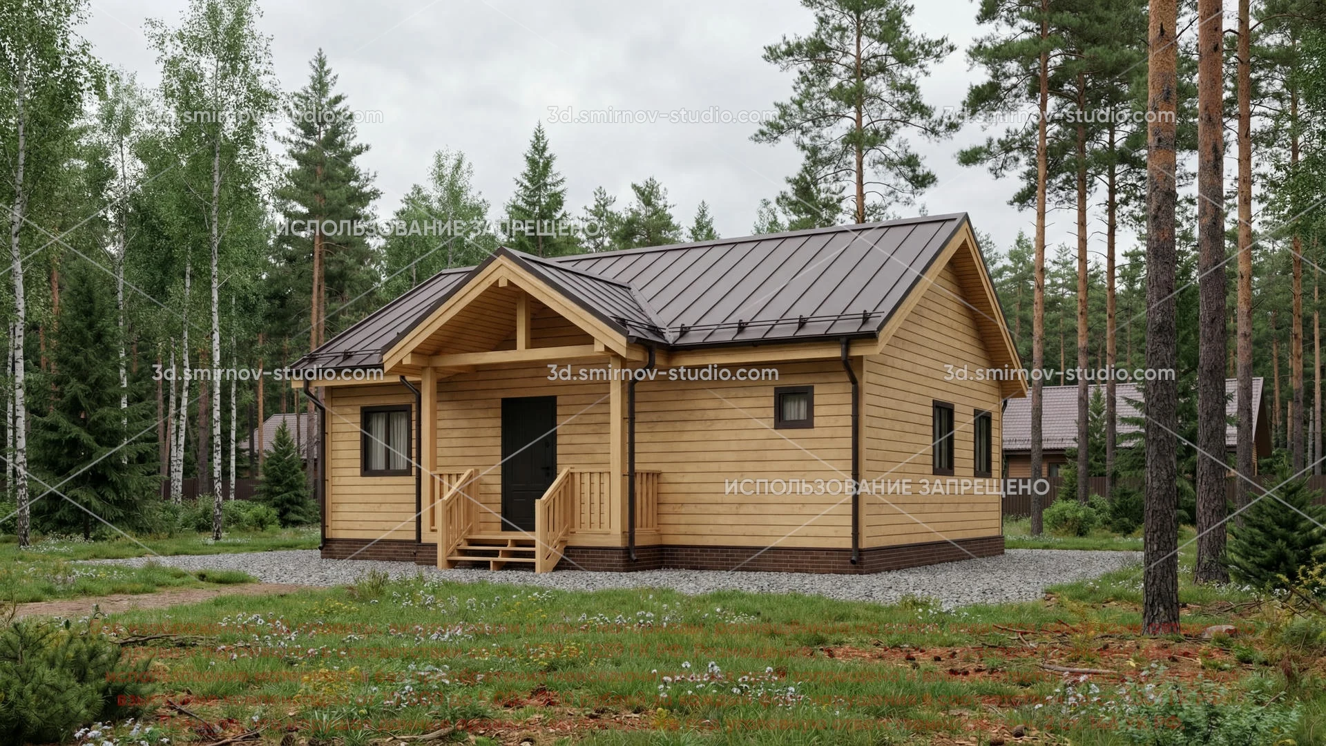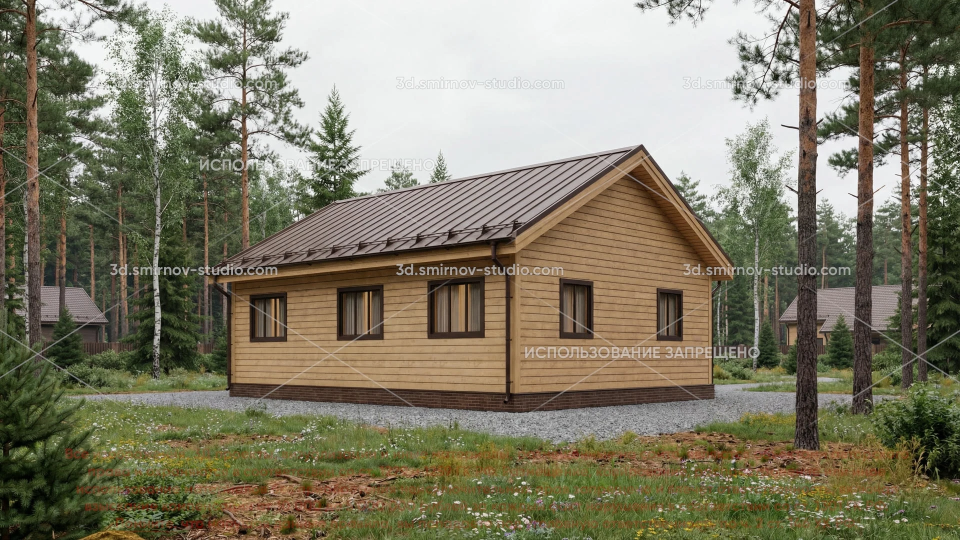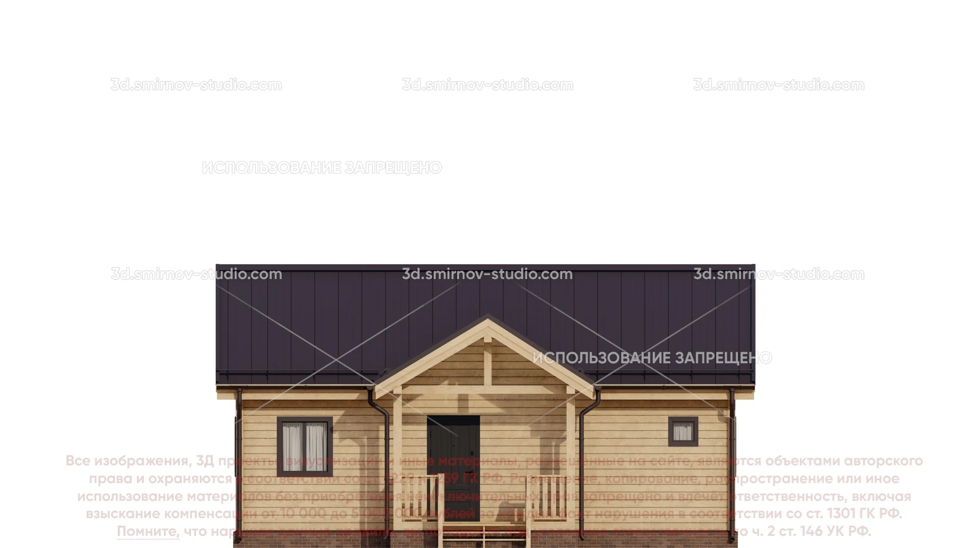 3Д проект дома из бруса 10 на 7.5 метров, площадью 68.1 м², с прямой крышей, крыльцом, котельной и санузлом