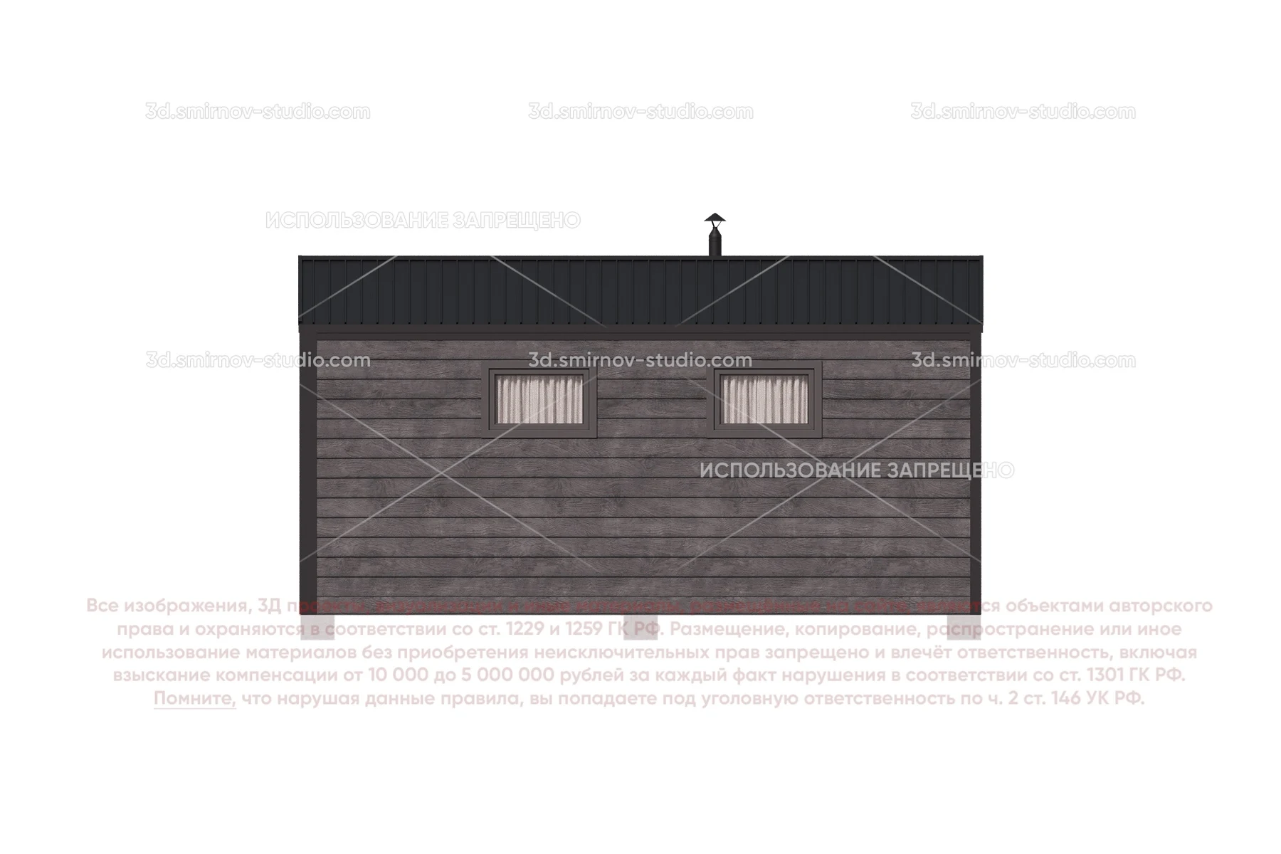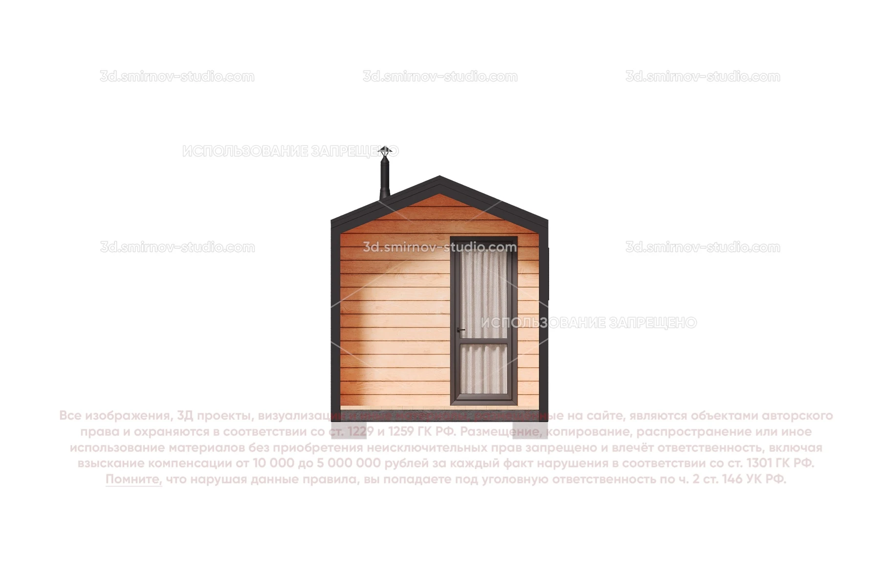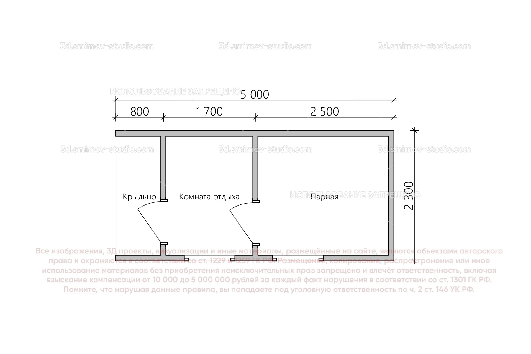 3Д проект мобильной бани в стиле барн 5 на 2.3 метра, площадью 9,34 м², с прямой крышей, крыльцом и комнатой отдыха