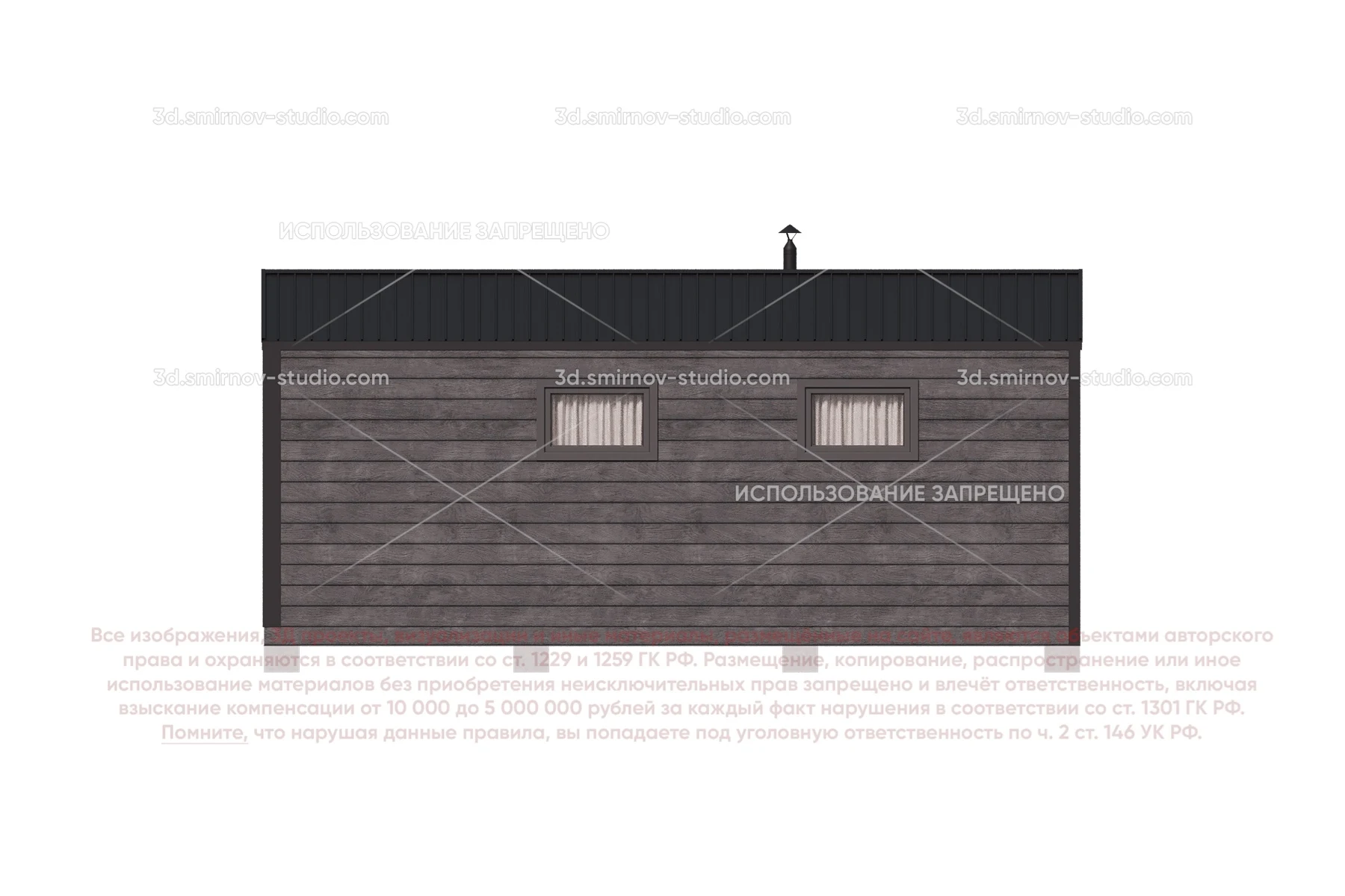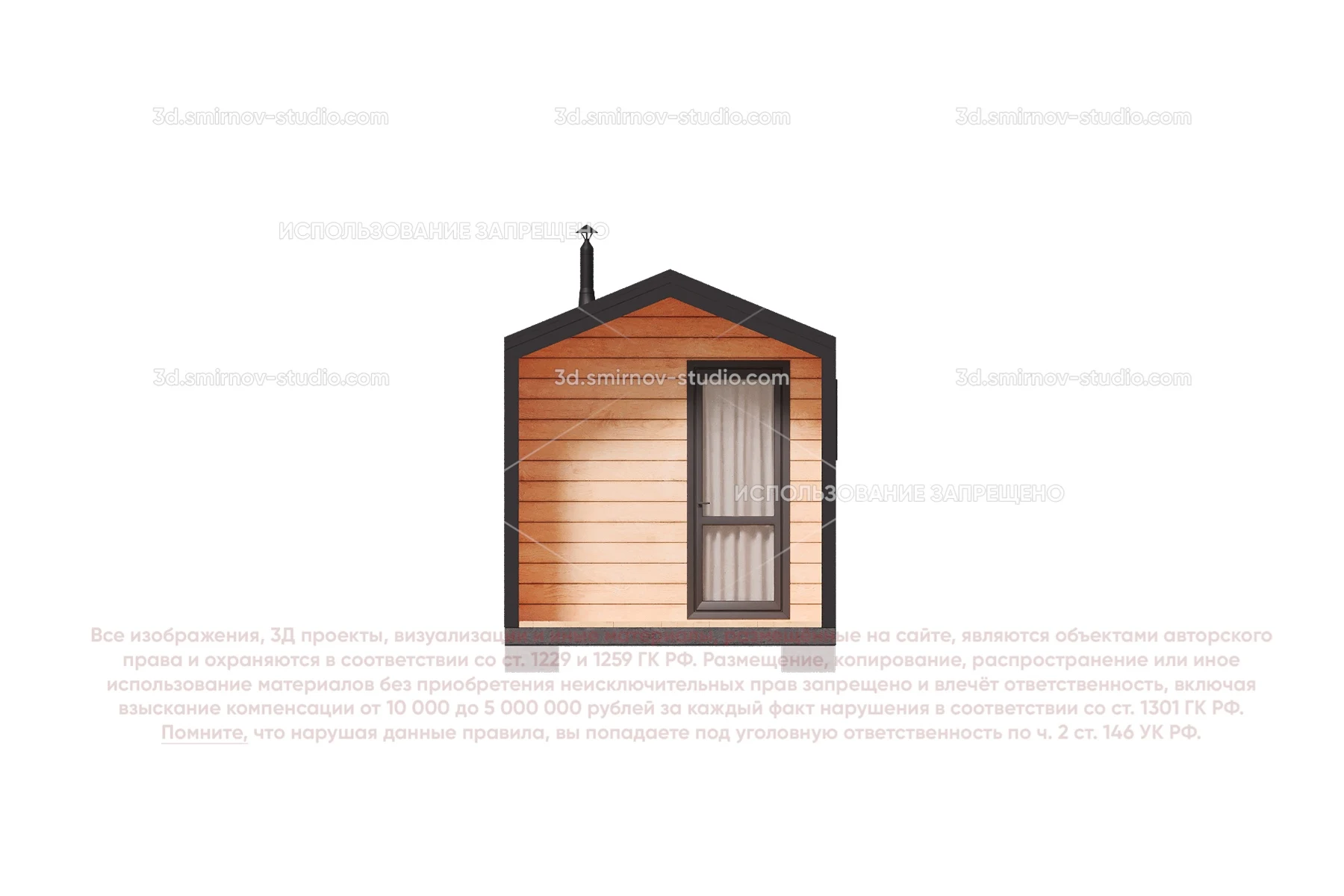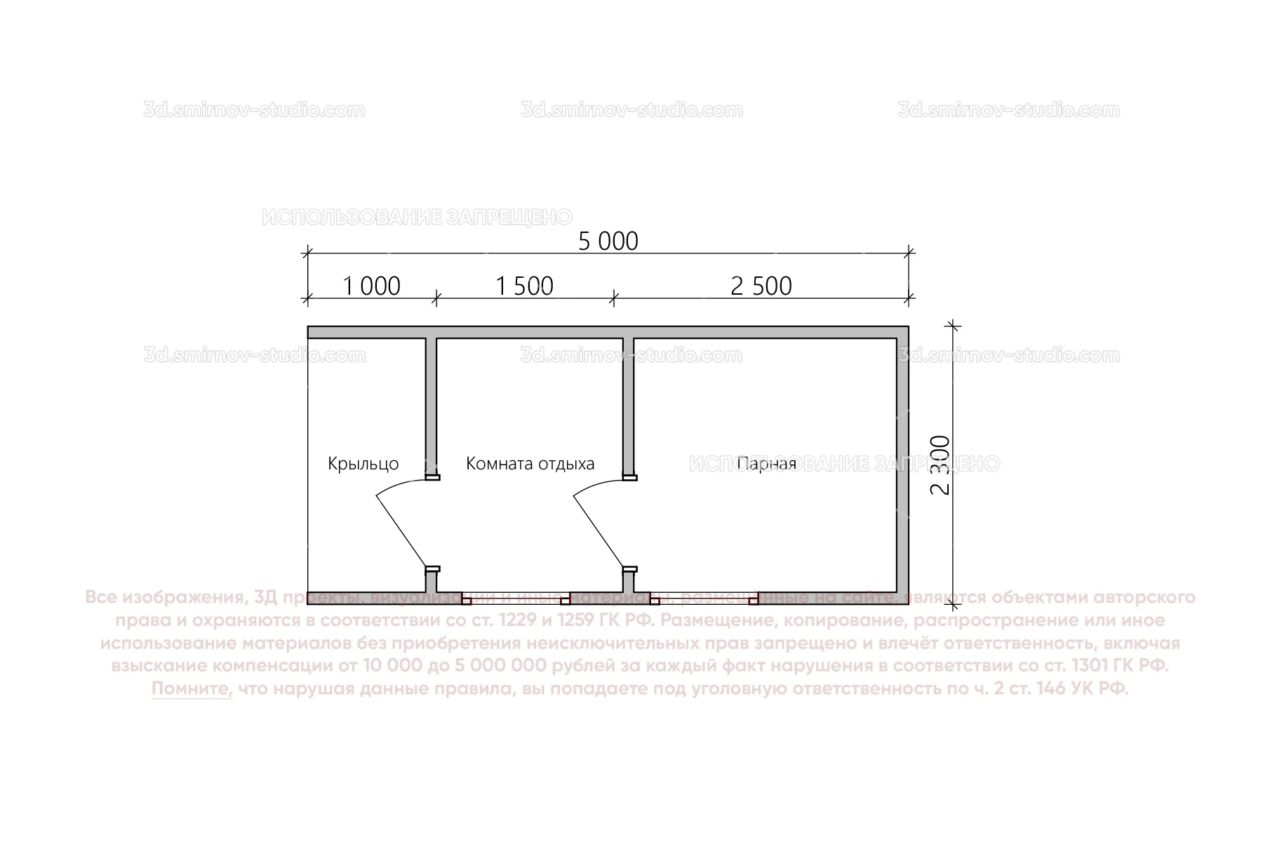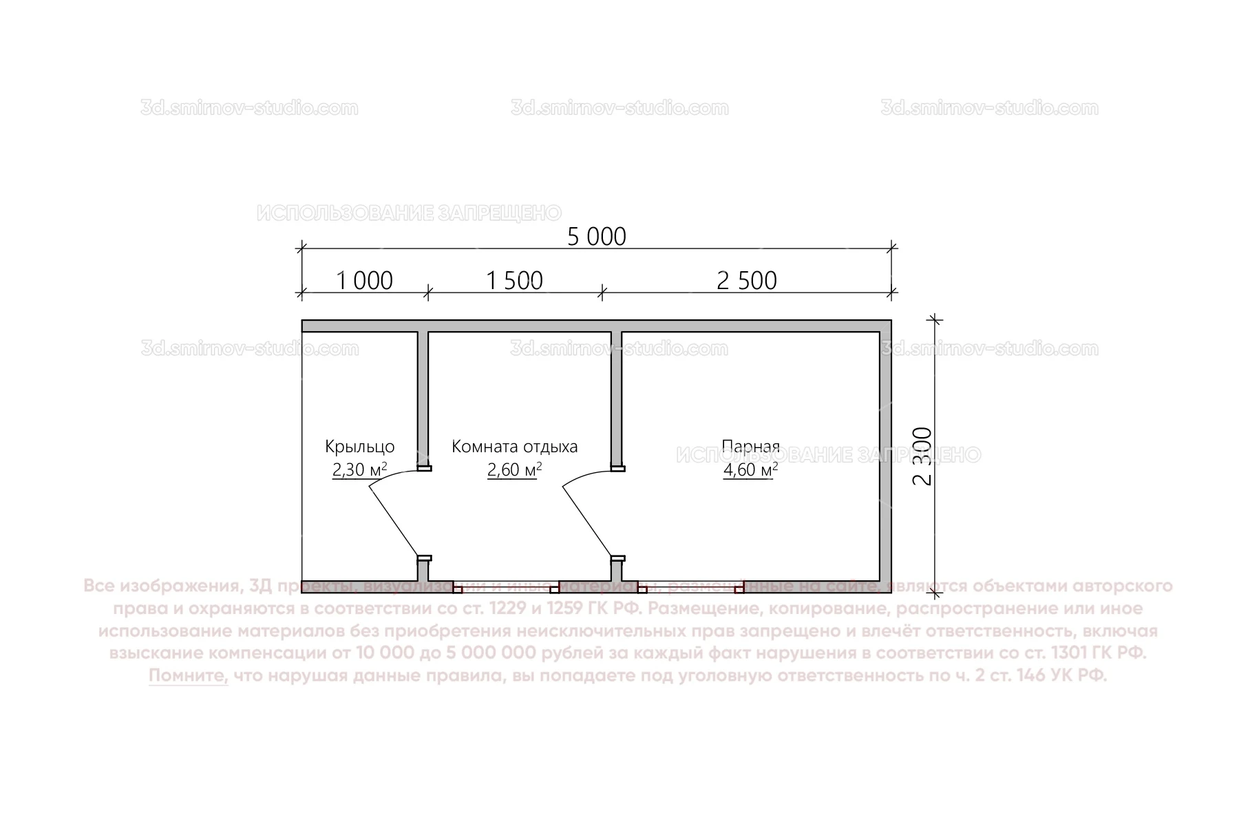 3Д проект мобильной бани в стиле барн 5 на 2.3 метра, площадью 9,50 м², с прямой крышей, крыльцом и комнатой отдыха