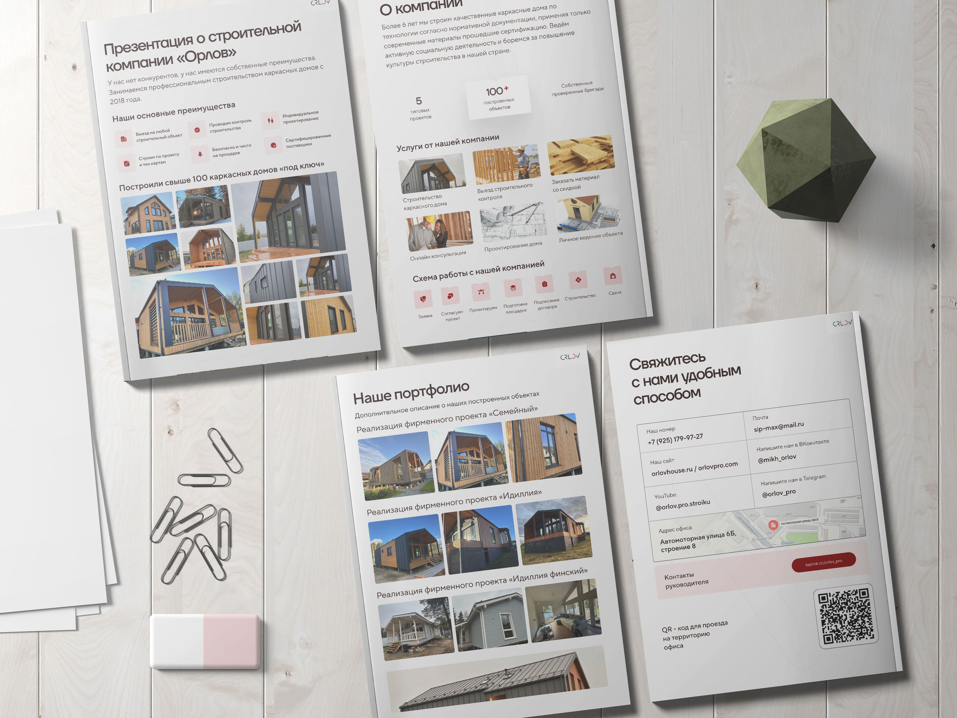 Разрабатываем фирменные коммерческие предложения с адаптацией под .docx формат, а также презентации для строительных компаний под услуги, проекты, строительство домов и бань, а также другие направления бизнеса. Делаем упор на понятную структуру, аккуратную подачу информации и визуальное соответствие стилю компании.